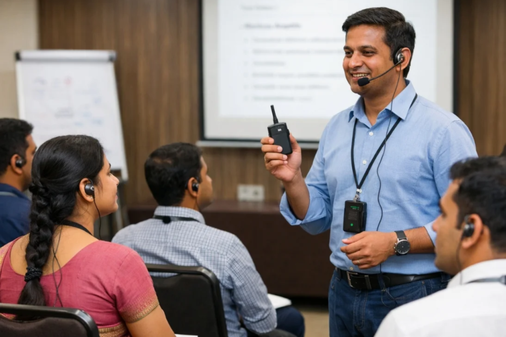 We provide tour guide systems on rent that allow guides or supervisors to communicate clearly with visitors without interrupting operations. Each participant receives audio directly through wireless receivers, ensuring smooth and effective communication even in the noisiest environments.