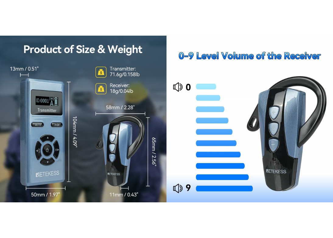 The receiver includes 9-level volume adjustment, allowing users to set the sound level according to their comfort.