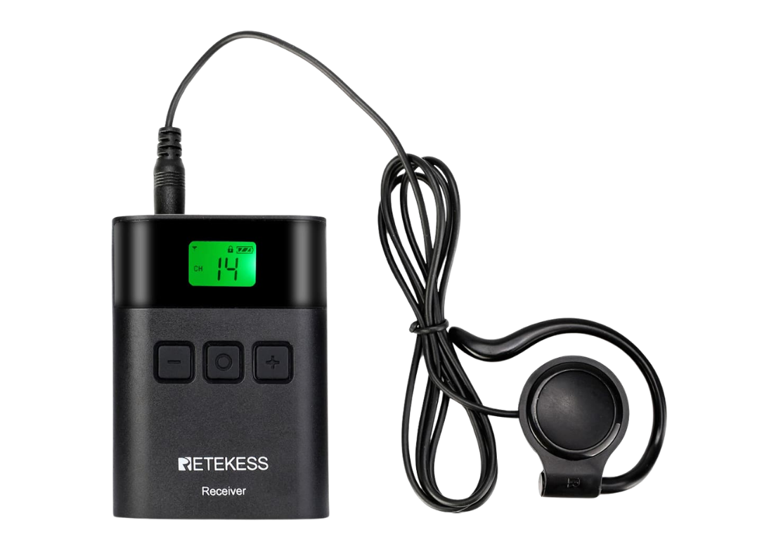 The wireless receiver provides 10 levels of volume adjustment, allowing listeners to customize audio levels according to their hearing preferences and surrounding noise conditions.