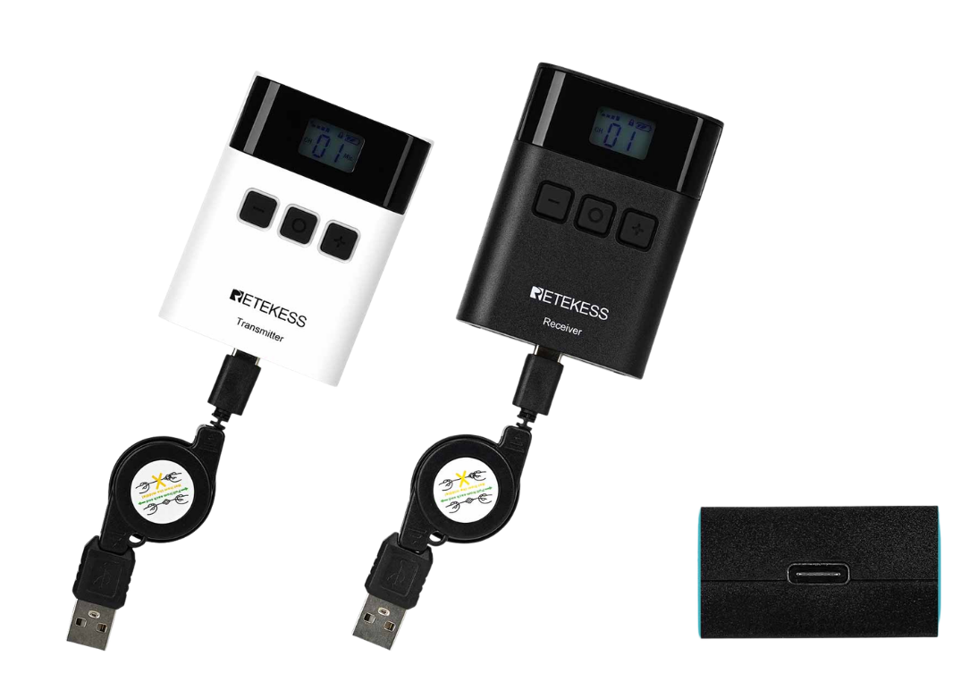 The TT122 transmitter includes a microphone / AUX audio input jack.